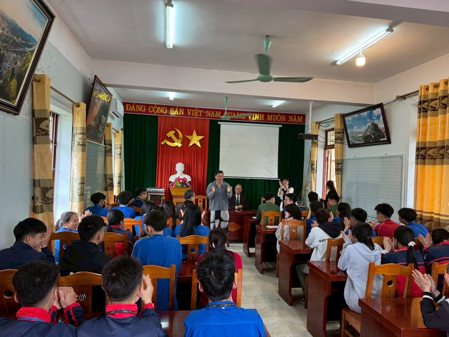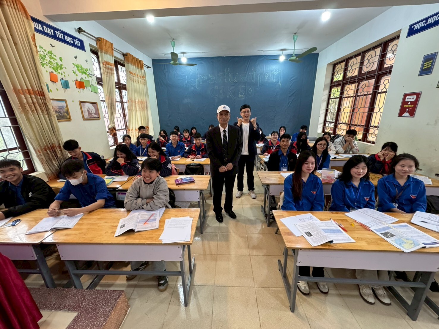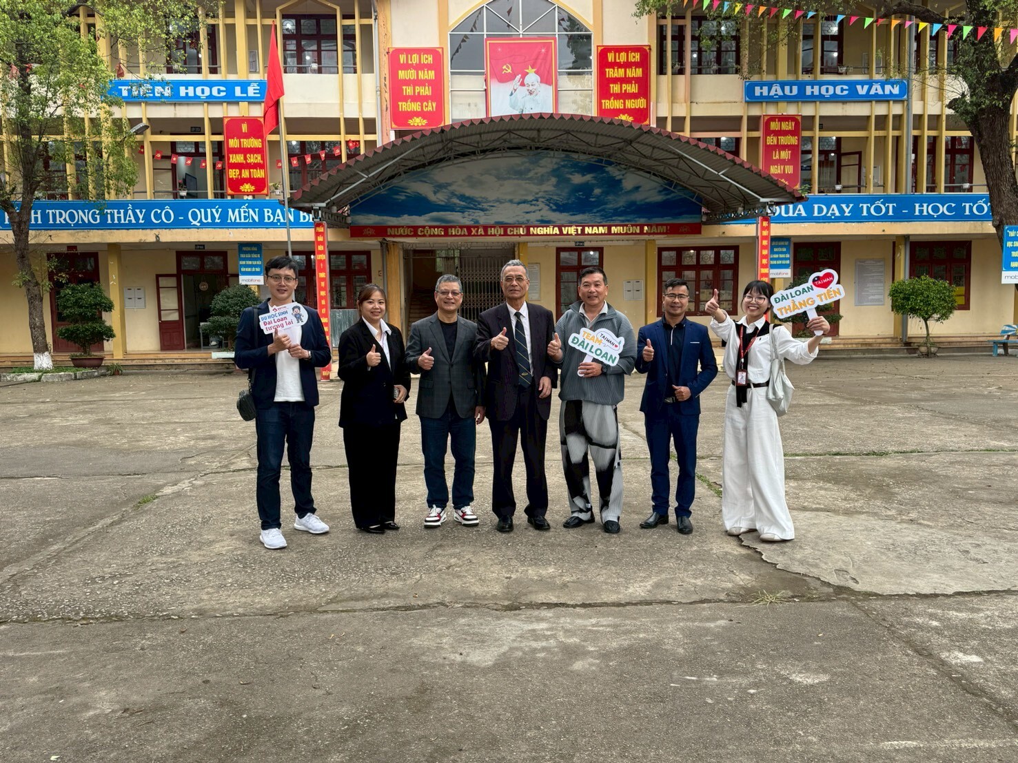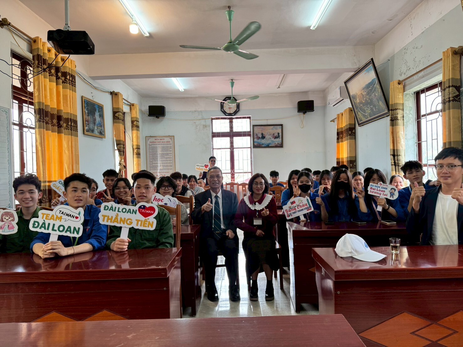 王建臺校長帶領國際處黃偉凡副處長及王恩普老師來到越南和平高中Trường THPT Hòa Bình入班宣傳美和科技大學,從越南河內至諒山市和平高中總距離全長133公里,路途遙遠,跋山涉水,過程漫長但不畏艱辛,目的是宣傳本校美和科技大學及交流參訪活動,過程中由本校王恩普老師協助全程介紹,表現自信亮眼、介紹流暢,現場獲得滿堂喝彩,讓當地學生留下深刻印象!行程最後,王建臺校長也與越南和平高中Trường THPT Hòa Bình 的校長合影留念,為此次交流留下珍貴紀錄。美和科技大學持續拓展國際招生版圖,期待未來迎接更多優秀的越南學子加入美和大家庭。