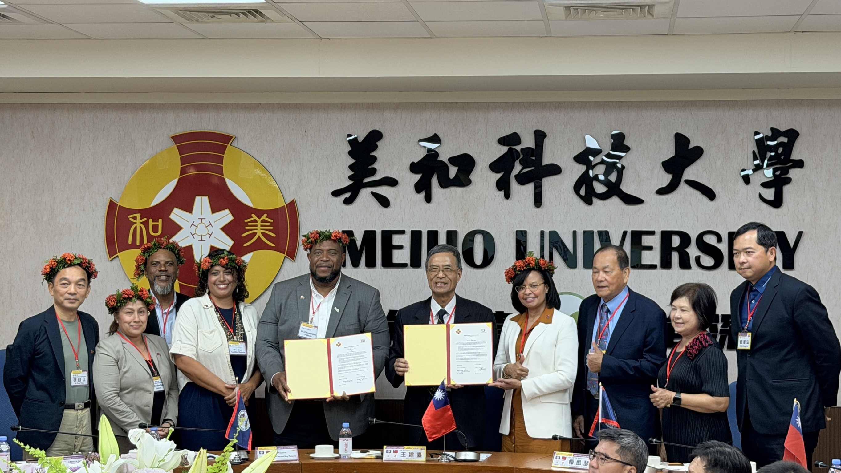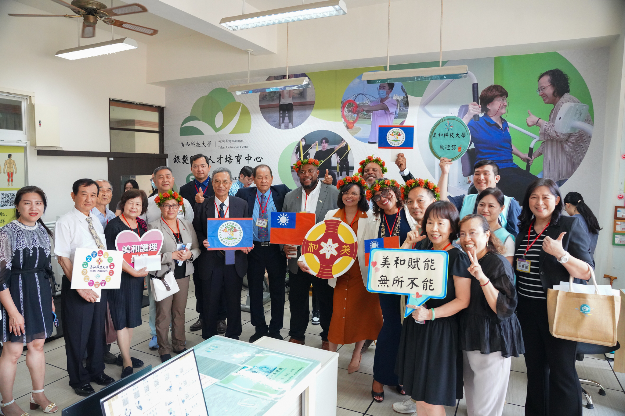 為深化兩國教育與產學合作,本校與貝里斯大學於本次參訪正式簽署合作備忘錄(MOU)。兩校校長共同確認雙方結盟意向,未來將透過多元化的學術與訓練計畫、師生互訪及技術交流等活動,推動互惠互利的國際學術合作。隨後,在董事長劉忠志及校長王建臺陪同下,參訪團實地考察該校智慧健康照護中心、預防及延緩失能失智人才培育中心、食安人才培育中心和銀髮賦能人才培育中心等幾大特色中心,以及華語文中心教室、護理、觀光、餐旅等相關科系及特色教室。